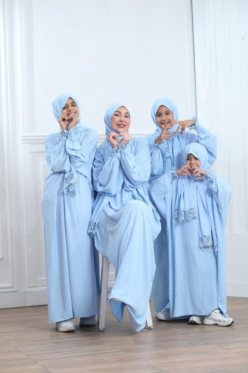 لأن الصغيرات يستحقن الراحة والأناقة في صلاتهن، نقدم لكِ أسدال الصلاة للبنات المصنوع من قماش الأيروبين الصيفي الخفيف والمريح. يتميز بتصميم عملي بقطعة واحدة مع سحاب أمامي لسهولة الارتداء، وأكمام مطاطية لضمان الراحة والحركة بحرية. الأجمل؟ يمكنكِ الآن تنسيق إطلالتك مع صغيرتك بفضل توفر طقم مطابق للأم وابنتها، لتعيشي لحظات صلاة مميزة ومليئة بالحب والتواصل.
